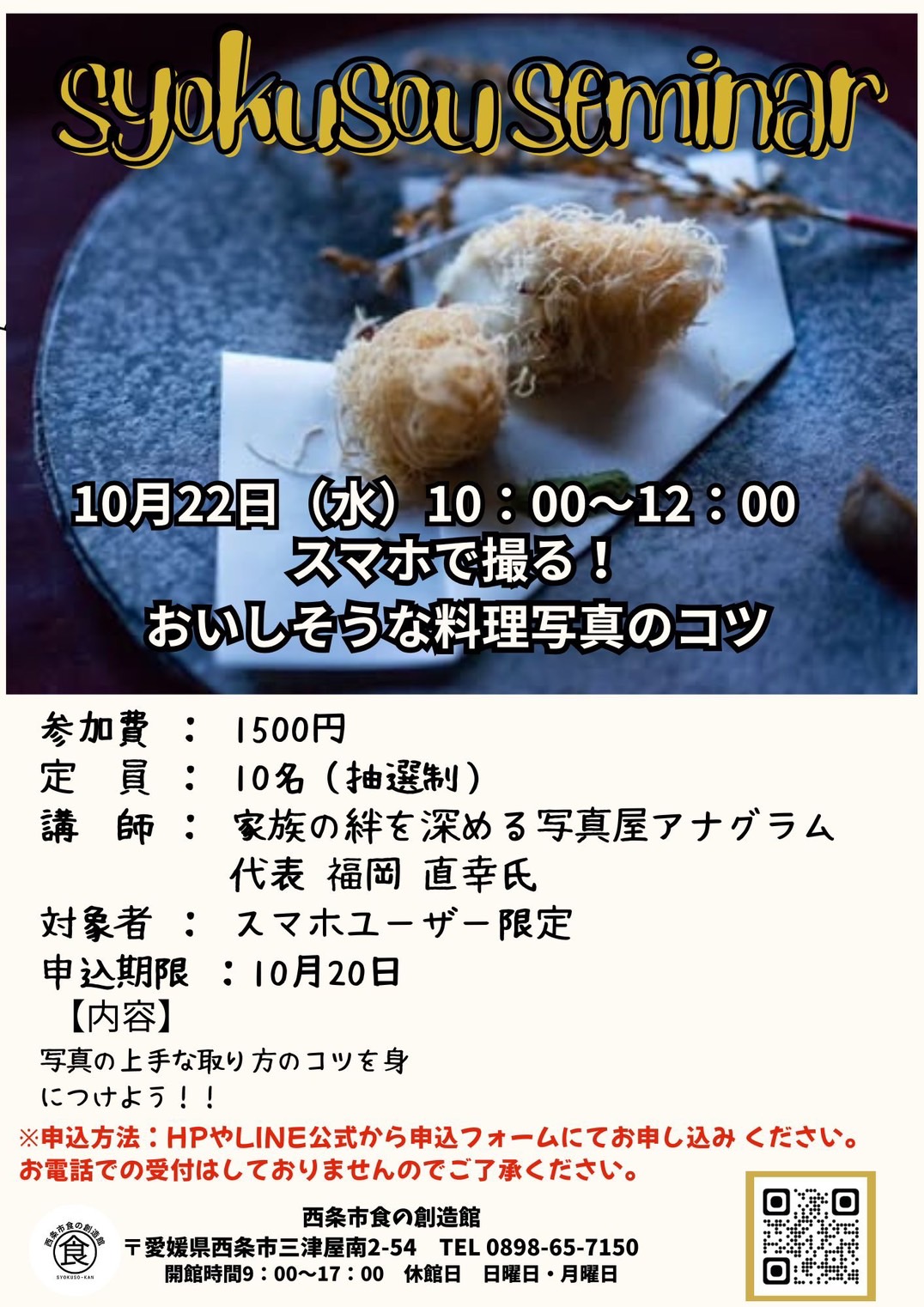 10/22(水)スマホで撮る!おいしそうな料理写真のコツ【食創館のイベント】